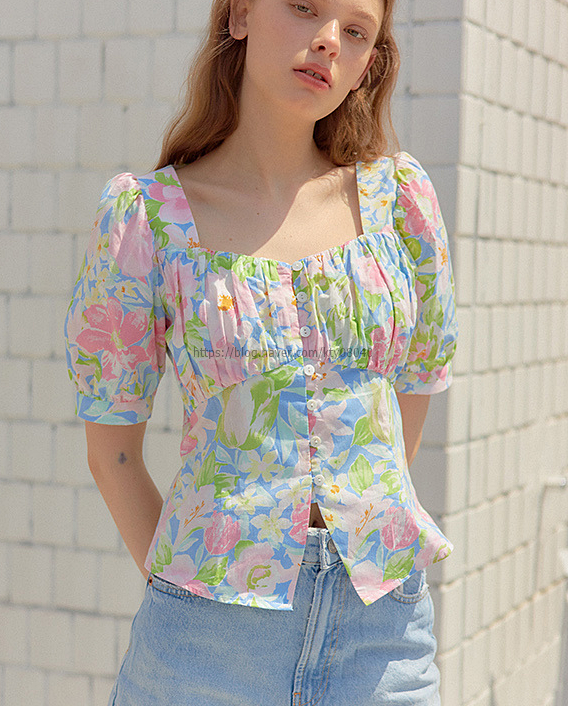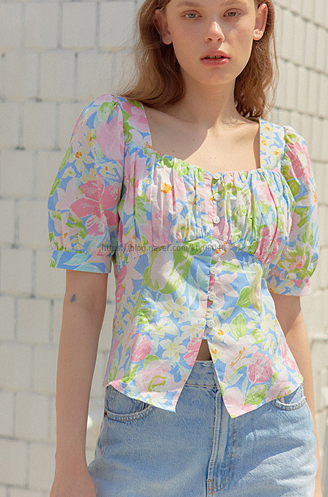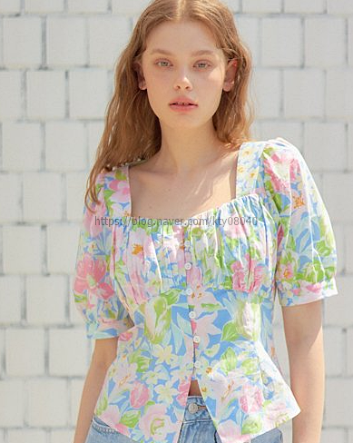 나는 SOLO 솔로 송해나 블라우스 하트 넥 하프 슬리브 셔링 블라우스_플라워HEART NECK HALF SLEEVES SHIRRING BLOUSE 57회 옷 패션 20220809